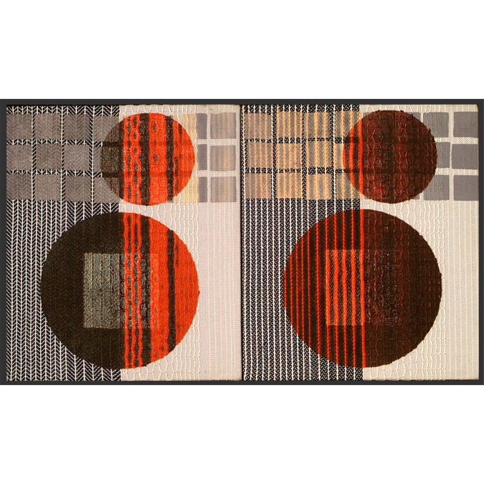 Media: Cotton, rayon, conductive yarns, silver ink, thermochromic ink, custom drive electronics and expressive software. 12"w x 14"h, per section. link to video Big Dot is an early series of hand-woven color change textiles which explore the effect of weave structure in color-change textiles. Herringbone twill is combined with a deflected weft structure. The herringbone twill structure is visible when the conductive yarn is heated and the color change ink changes color. By deflecting the conductive yarn in the weft, shapes are created in the color change ink as well. With IFM Design Studio.