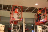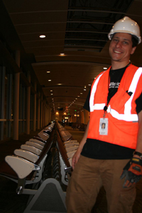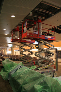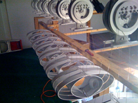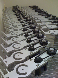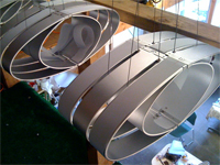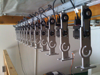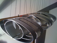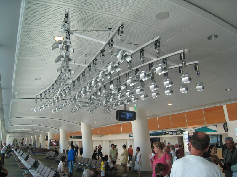 This interactive robotic sculpture explores the subjective experience of time in an airport holdroom. 65 robotic nodes are suspended from a sculptural frame. The piece counts using a variety of software generated patterns which are influenced and changed by the activity of travelers in the room.