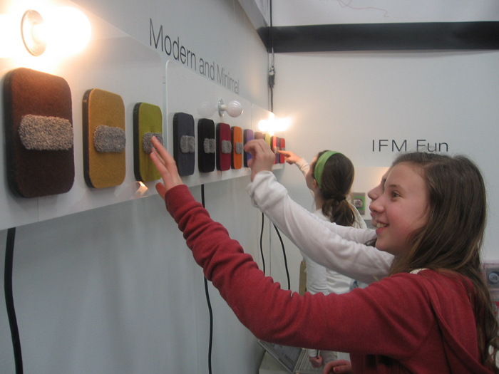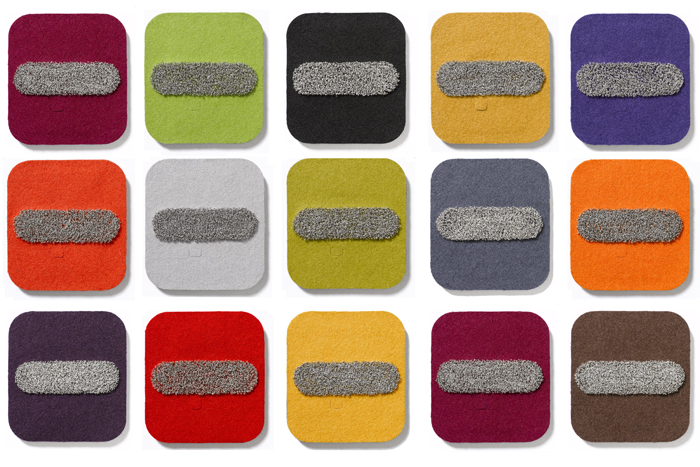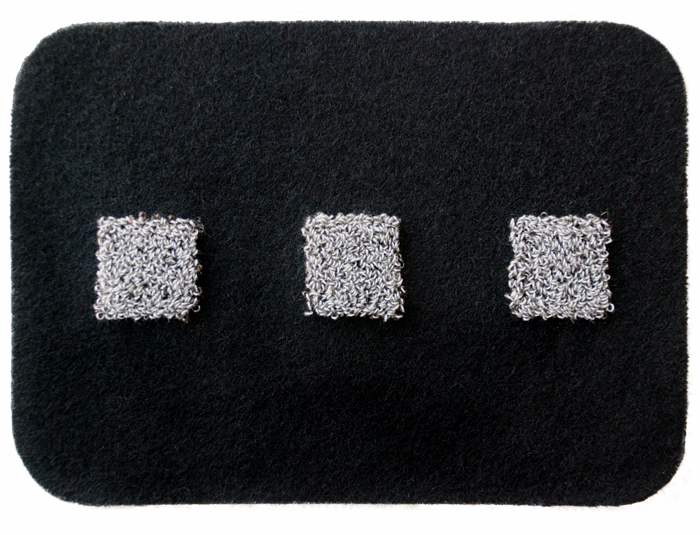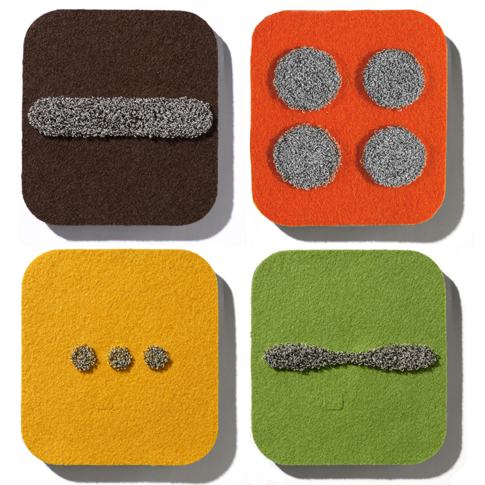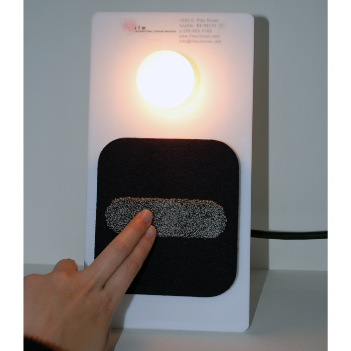 Media: DesignTex wool felt, hand tufted conductive yarns, acrylic, neoprene and commercial dimmers. Individual units: 4"w x 6"h x 3/8"d. Manufactured by hand at IFM.