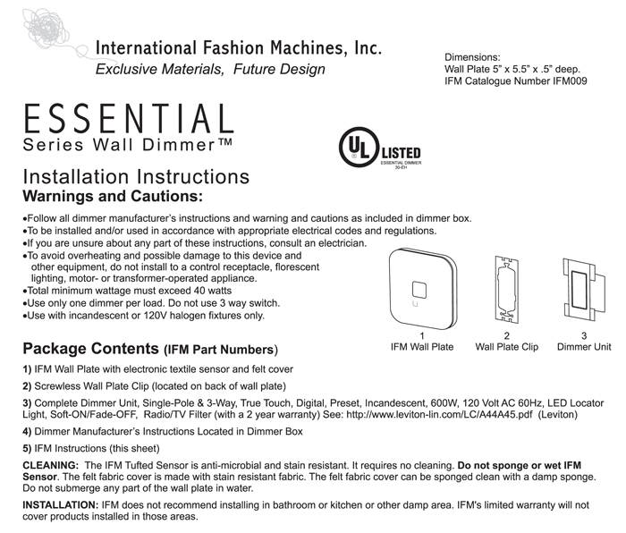 Essential Dimmers are antimicrobial, stain resistant and durable. They are UL listed and patented.