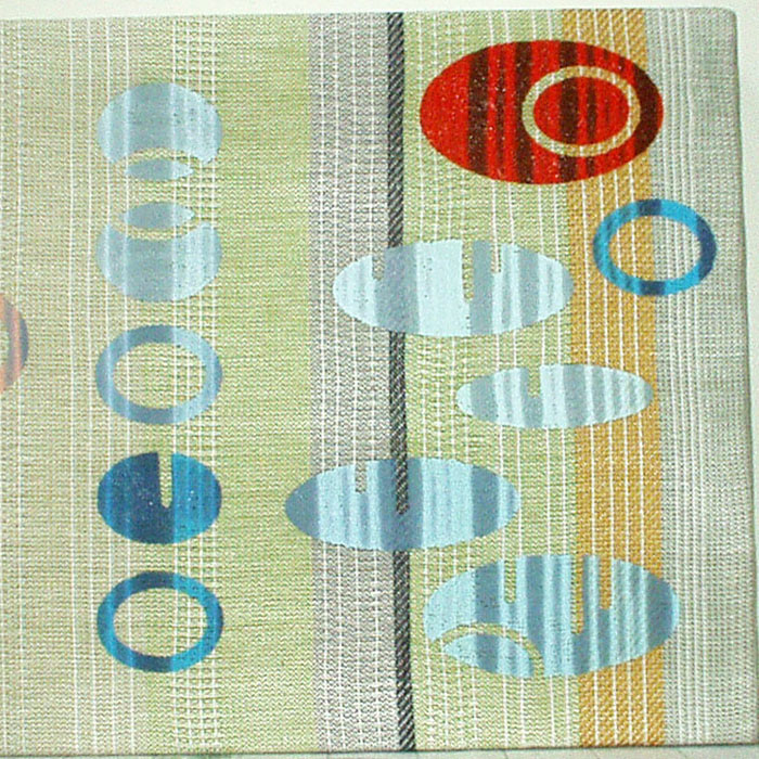 Media: Hand-woven cotton, rayon, conductive yarns, silver ink, thermochromic ink, custom drive electronics and expressive software. 13"w x 60"h. With Joey Berzowska. This color change textile was created for architect Jennifer Seigal's installation at the Cooper Hewitt Design Triennial. This piece runs three scripted sequences, which draw the viewer's eyes across the surface of the textile.